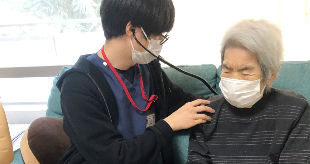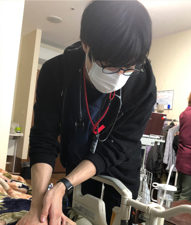 まず、在宅医療でできることがかなり広いことを知りました。はいさいクリニックでは輸液の種類も多く、抗生剤もメロぺネムまでカバーされており敗血症まで対応できるとは以前までは思いもしませんでした。確かに在宅医療ではレントゲンやCTは撮影出来ませんが、問診やフィジカルやエコーで判断できることも多く、そういった診察の大切さを改めて実感できました。先生方も非常に知識が豊富でそのような診察の仕方を色々と教えてくださり大変勉強になりました。はいさいクリニックは丁寧な診察、24時間対応、さらには腹水穿刺などの手技も行っており病院までとはいかないもののそれに匹敵するような医療は提供できているのではないかなと思いました。さらに、レビー小体型認知症などの患者のADLや覚醒状態の調節が必要な疾患は、普段患者をみている家族の方が変化に気づきやすいということもあるためか病院より在宅医療の方が調節がうまくいっているなと思いました。これらは偏に石田院長先生の患者を在宅で診てあげたいという熱意からきているものだと感じました。